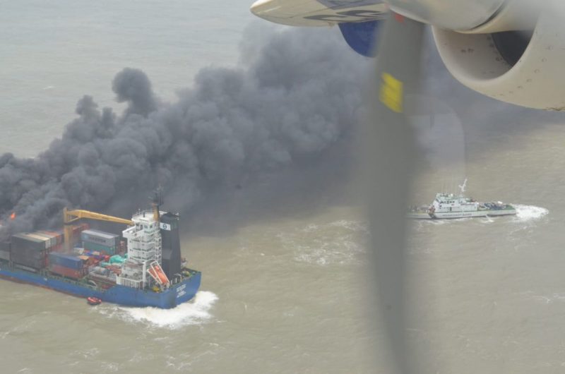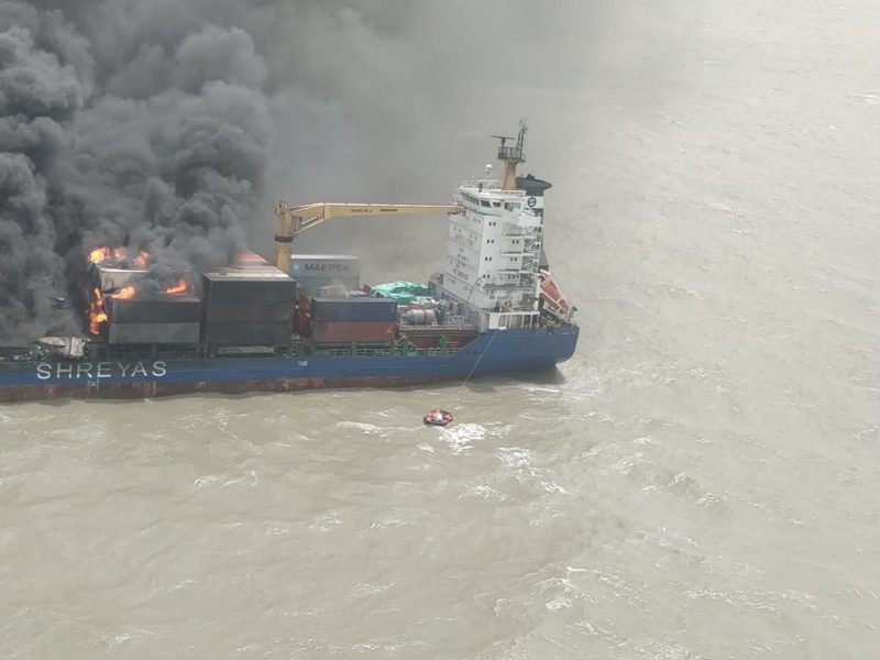 Индийская береговая охрана спасла всех 22 членов экипажа контейнеровоза после крупного пожара на борту судна, примерно в 50 милях от побережья Индии в Бенгальском заливе.