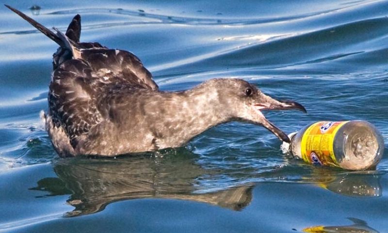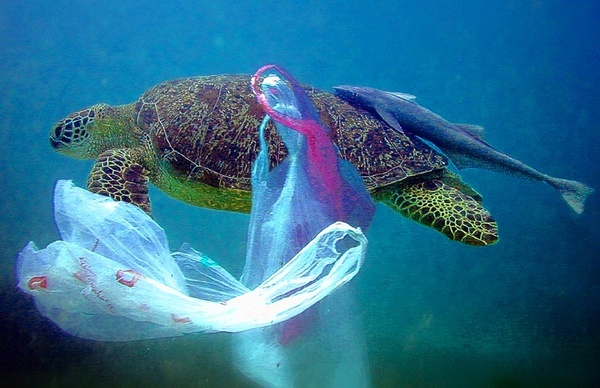 Пластик не является биоразлагаемым материалом. Он только разлагается на микрочастицы под воздействием солнечного света. Эти микрочастицы попадают в морскую пищевую цепочку. Их поглощают маленькие рыбки, которых потом съедает более крупная рыба либо морские птицы. Люди также страдают от употребления этой рыбы, креветок и крабов.