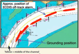 План перехода судна отображался на ЭКДИС и почти совпадал с маршрутом лоцмана. Согласно обоим источникам, судно должно было оставаться в центре узкого канала, но были небольшие отличия в радиусе поворота.