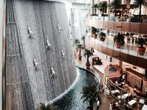 Недалеко от Burj Khalifa находится Фонтан Дубай. Это один из самых больших и высоких фонтанов в мире. Его шутеры и подвижные форсунки настолько эффектно выбрасывают и изящно изгибают водные струи, что вы просто обязаны посетить это шоу, особенно учитывая, что оно абсолютно бесплатно и проходит ежедневно с 18:00 до 23:00.