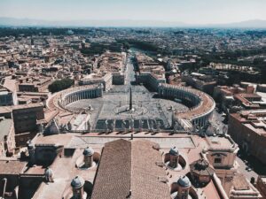 Обязательно поднимитесь на купол собора Святого Петра, откуда открывается неописуемый вид. Добраться туда можно двумя способами: подняться на лифте, а затем преодолеть 320 ступенек за 10 евро или пройти 551 ступеньку, сэкономить 2 евро, подняться по коридору собора и подёргать за ручки дверей, вдруг вам повезёт и одна из них будет открыта. Кто знает, что за ними скрыто?