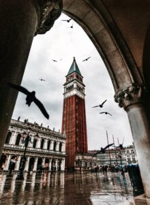 Главная достопримечательность Венеции – это городская площадь San Marco, что в переводе площадь Святого Марка. Из-за прилива воды в середине дня San Marco превращается в озеро. Конечно, вы можете приобрести резиновые сапоги, для таких случаев, но куда лучше разуться и прогуляться по площади босиком, уверенна, ваши дети будут в восторге. На площади San Marco находится собор и колокольня имени Святого Марка, а также главные достопримечательности города.